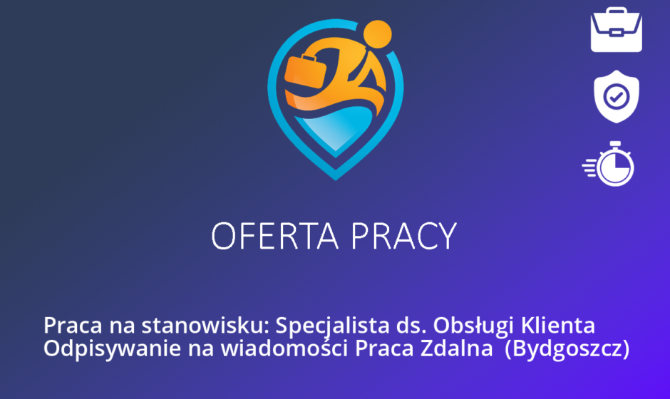 Wiadomości Bydgoszcz > News > Praca > Praca na stanowisku: Specjalista ds. Obsługi Klienta Odpisywanie na wiadomości Praca Zdalna (Bydgoszcz)