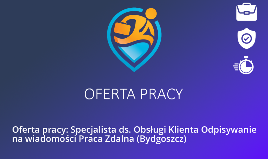 Wiadomości Bydgoszcz > News > Praca > Oferta pracy: Specjalista ds. Obsługi Klienta Odpisywanie na wiadomości Praca Zdalna (Bydgoszcz)
