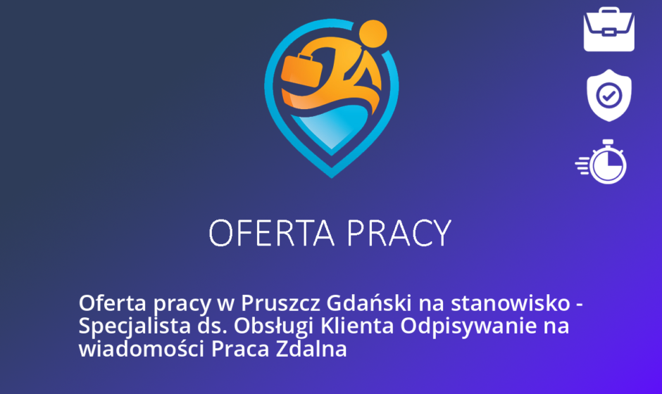 Wiadomości Bydgoszcz > News > Praca > Oferta pracy w Pruszcz Gdański na stanowisko – Specjalista ds. Obsługi Klienta Odpisywanie na wiadomości Praca Zdalna