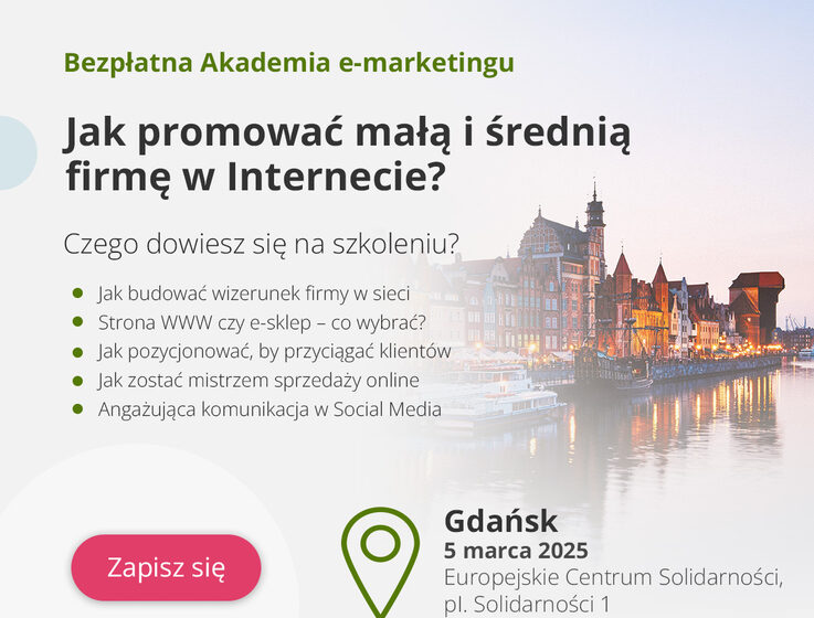 Już wkrótce rusza 13. edycja Akademii e-marketingu, cyklu bezpłatnych szkoleń i warsztatów dla przedsiębiorców z sektora MŚP, poświęconych strategiom promocji w Internecie. W 2025 roku planowane jest 15 spotkań w największych miastach Polski, podczas których uczestnicy będą mogli zdobyć lub poszerzyć wiedzę z zakresu marketingu online, takich jak tworzenie stron internetowych, SEO czy wykorzystanie narzędzi do promocji biznesu online.