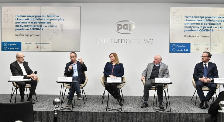 Punktem wyjścia do dyskusji była prezentacja wyników badania „Humanizacja procesu leczenia i komunikacja kliniczna pomiędzy pacjentem a personelem medycznym przed i w czasie pandemii COVID-19” – projektu realizowanego na Uniwersytecie Warszawskim przez zespół badawczy pod kierownictwem prof. dr. hab. Zbigniewa Izdebskiego, a sfinansowanego w ramach grantu Agencji Badań Medycznych (ABM). Projekt w ramach badania głównego objął 114 jednostek ochrony zdrowia z całej Polski. Badanie zostało przeprowadzone wśród lekarzy, pielęgniarek, ratowników medycznych i innych pracowników ochrony zdrowia oraz pacjentów z wylosowanych jednostek i pacjentów populacyjnych, w sumie uczestniczyło w nim 5 925 osób. „Pandemia koronawirusa tylko uwypukliła te problemy, które od wielu lat istniały. Zajmowaliśmy się przede wszystkim procesem diagnostyczno-terapeutycznym, zapominając, że w osi tego procesu jest zawsze pacjent – jego uczucia, potrzeby, wsparcie psychologiczne. Jako Agencja Badań Medycznych mamy pełną świadomość tego, że badania kliniczne powinny być wzbogacone o kwestie humanizacji. Dlatego bardzo się cieszę, że takie badania mogliśmy sfinansować” – mówił dr hab. n. med. Radosław Sierpiński, prezes ABM. Dodał, że liczy na ożywioną dyskusję w środowisku akademickim na ten temat, która przełoży się na konkretne rekomendacje systemowe. „Z ministrem zdrowia Adamem Niedzielskim i panem profesorem Izdebskim wielokrotnie rozmawialiśmy o tym, jak istotny jest proces humanizacji również w kształceniu i chcielibyśmy, aby studenci medycyny, pielęgniarstwa i ratownictwa medycznego już na początku swojej drogi byli kształceni w tym zakresie, żeby ta komunikacja z pacjentem była jedną z podwalin ich późniejszej pracy” – wskazywał Radosław Sierpiński. „W Polsce świadomość dotycząca humanizacji medycyny w pewnych grupach jest duża. Ideę tę propagował prof. Kazimierz Imieliński. Natomiast jest znacznie trudniej, kiedy chcemy dostrzec to, na ile te idee mogą przekładać się na praktykę życia codziennego – zwracał uwagę prof. Zbigniew Izdebski, kierownik Katedry Biomedycznych Podstaw Rozwoju i Seksuologii Uniwersytetu Warszawskiego oraz szef Katedry Humanizacji Medycyny i Seksuologii Collegium Medicum Uniwersytetu Zielonogórskiego, prezentując wyniki badań. Dla nas bardzo ważne było, by dowiedzieć się, jak ludzie postrzegają termin humanizacja medycyny i jaka jest perspektywa rozumienia tego aspektu z punktu widzenia pracowników ochrony zdrowia oraz pacjentów” – zaznaczył. Wyniki badania wskazują, że dla pacjentów najważniejsza jest jasna i zrozumiała komunikacja z pracownikami ochrony zdrowia (43 proc. respondentów), 38 proc. z nich deklaruje, że ma potrzebę, aby pracownicy poświęcili im czas i ich wysłuchali. Z kolei personel medyczny i niemedyczny na pierwszym miejscu stawia staranność i dokładność wykonywanych zadań (49 proc. badanych). Jednak pielęgniarki najwyżej cenią indywidualne podejście do pacjenta (52 proc.). Największym utrudnieniem na drodze do dobrej komunikacji między personelem medycznym a pacjentem jest w opinii pacjentów – brak wystarczającej ilości czasu (43 proc.), a według pracowników ochrony zdrowia – nadmierna biurokracja (45 proc.) Pielęgniarki wskazywały na zbyt małą liczbę personelu (50 proc.), a ratownicy medyczni – postawę roszczeniową pacjenta lub jego rodziny (51 proc.). „Boli mnie i dotyka pojęcie >>roszczeniowy pacjent<<. To powinno zostać wykreślone ze słownika. Nie ma pacjenta czy rodziny roszczeniowej, jest tylko pacjent w dysonansie poznawczym, wobec tego, co słyszy i widzi, a tym, jak sobie wyobraża to jak powinna wyglądać opieka. Jeśli brak jest komunikacji i podejścia empatycznego, to pozostaje tylko krzyk, gniew, agresja, żeby zwrócić na siebie uwagę” – wskazywał podczas debaty dr hab. n. med. Tomasz Stefaniak, dyrektor ds. lecznictwa Uniwersyteckiego Centrum Klinicznego w Gdańsku. Jego zdaniem, taka sytuacja oznacza, że lekarz nie potrafił wygenerować komunikacji na takim poziomie, by doszło miedzy nim a pacjentem do interakcji opartej na zaufaniu, szacunku i współpracy. „Jeśli tej relacji nie będzie, pacjent nie będzie stosował się do zaleceń. Musimy współpracować, musimy być partnerami i tego dzisiaj brakuje” – podkreślał Tomasz Stefaniak. Uczestnicy dyskusji zwracali uwagę, że pacjent powinien znajdować się w centrum uwagi lekarza, nie tylko jako przypadek kliniczny, ale również jako człowiek. Według nich jasna i zrozumiała komunikacja między pacjentem a lekarzem to jeden z najistotniejszych elementów procesu terapeutycznego. „Relacja lekarz – pacjent to jest droga dwukierunkowa, bezpieczeństwo na drodze zależy od wszystkich jej użytkowników. Kluczową kwestią jest to, czy jesteśmy w stanie komunikować się w sposób efektywny – mówił prof. dr hab. Paweł Łuków, etyk, dziekan Wydziału Filozofii Uniwersytetu Warszawskiego. – Bardzo ważna jest umiejętność słuchania przez pracowników medycznych, to jedna z bardziej szlachetnych sztuk, którą każdy lekarz powinien opanować” – dodał. „Zaangażowanie w pomoc pacjentowi, daje lekarzowi wsparcie dla niego samego. Nawiązanie dobrej relacji sprawia, że pacjent jest bardziej skłonny do przyjmowania zaleceń – stwierdził prof. dr hab. n. med. Aleksander Araszkiewicz, psychiatra, Collegium Medicum w Bydgoszczy. – Pacjenci chcą, aby lekarz był empatyczny, wskazują na brak takiego podejścia. A za tym idzie jakość komunikacji. Jak wskazują badania, dla ratowników medycznych najważniejsza była skuteczność realizowania określonych procedur, empatia nie była tak istotna. Z kolei pielęgniarki najbardziej wpisują się w hasło >>pacjent w centrum uwagi<<” – zauważył. Dr Anna Ratajska, psycholog z Katedry Humanizacji Medycyny i Seksuologii Uniwersytetu Zielon