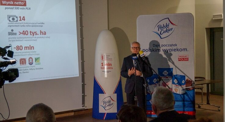 15 stycznia odbyła się konferencja podsumowująca przebieg kampanii cukrowniczej 2023/2024 na terenie Oddziału Krajowej Grupy Spożywczej S.A. – Cukrowni Kluczewo. W spotkaniu wzięli udział m.in.: prezes zarządu Krajowej Grupy Spożywczej S.A. Marek Zagórski, dyrektor Cukrowni Kluczewo Paweł Dawiskiba, prezes Krajowego Związku Plantatorów Buraka Cukrowego Krzysztof Nykiel, prezes zarządu Okręgowego Związku Plantatorów Buraka Cukrowego w Bydgoszczy Józef Pawela, Prezydent Stargardu Rafał Zając oraz były Minister Rolnictwa Artur Balazs. W 2023 roku Krajowa Grupa Spożywcza S.A. odnotowała rekordową kampanię cukrowniczą pod względem ilości skupionych buraków i produkcji cukru. W dniu 28 grudnia 2023 r. spółka wyprodukowała 1 milion ton cukru, a do 11 stycznia 2024 r. jej oddziały skupiły około 7,3 mln ton buraków cukrowych. Średnio kampania cukrownicza w Spółce trwa 118 dni. „Istotnym elementem sukcesu tegorocznej kampanii jest partnerstwo z plantatorami buraka cukrowego. Nie jest to wyłącznie układ czysto biznesowy – dokładamy do podstawowej relacji dostawcy i odbiorcy dodatkowe elementy, takie jak wiedza, zaopatrzenie w środki produkcji, czy finansowanie. Pogłębianie tych relacji jest dla nas istotne, dlatego staramy się przenosić te pozytywne aspekty na współpracę z przedstawicielami innych segmentów” – powiedział Marek Zagórski – prezes zarządu Krajowej Grupy Spożywczej S.A. „Dzięki współpracy i rzetelnej dyskusji z Krajową Grupą Spożywczą S.A. można powiedzieć, że uprawa buraka cukrowego jest opłacalna. Obecne ceny buraka cukrowego gwarantują zwrot z uprawy i zysk dla plantatora” – powiedział Józef Pawela – prezes zarządu Okręgowego Związku Plantatorów Buraka Cukrowego w Bydgoszczy. „Od 140 lat produkujemy w Kluczewie cukier. W trakcie pierwszej kampanii, która skończyła się dokładnie 15.01.1885 roku wyprodukowano 2600 ton cukru. Dzisiaj produkujemy tyle w ciągu dnia” – powiedział Paweł Dawiskiba – dyrektor Oddziału Cukrownia Kluczewo. Średnia polaryzacja skupowa dla Krajowej Grupy Spożywczej S.A. od początku kampanii na dzień 11 stycznia wynosi 16,4%. Wg stanu na dzień 11 stycznia br. średnia cena buraków cukrowych kontraktowanych z dopłatami wynosi 228,5 zł netto. Plantatorzy dostarczający buraki do Krajowej Grupy Spożywczej S.A. w 2023 roku otrzymają zapłatę za buraki kontraktowane o zawartości cukru 16% w kwocie netto nie mniejszej niż 46,5 euro za 1 tonę. Na tę kwotę składa się cena podstawowa 45 €/t i świadczenie gwarantowane w kwocie 1,5 €/t (zaliczka na poczet świadczenia dodatkowego powiązanego z ceną cukru). Pochodzenie informacji: pap-mediaroom.pl